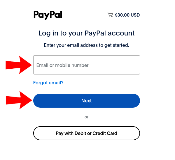 The next page will ask for your email address. PayPal will send your receipt to this email address.